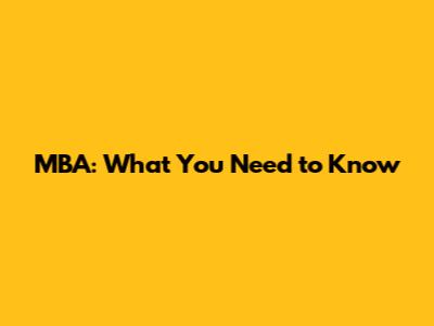 MBA: What You Need To Know