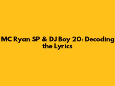 MC Ryan SP & DJ Boy 20: Decoding The Lyrics