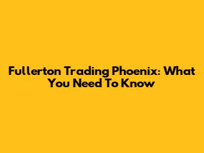 Fullerton Trading Phoenix: What You Need To Know