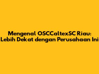 Hai guys! Kalian penasaran kan, OSCCaltexSC Riau perusahaan apa sih sebenarnya? Nah, di artikel ini, kita bakal kupas tuntas tentang OSCCaltexSC Riau. Mulai dari profil perusahaan, kegiatan bisnisnya, hingga dampaknya bagi masyarakat. Jadi, buat kalian yang pengen tahu lebih banyak tentang perusahaan ini, yuk simak terus!