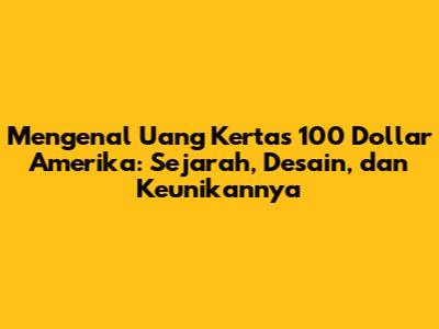 Mengenal Uang Kertas 100 Dollar Amerika: Sejarah, Desain, Dan Keunikannya