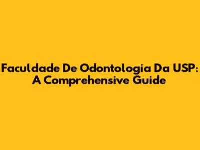 Faculdade De Odontologia Da USP: A Comprehensive Guide