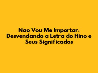 Nao Vou Me Importar: A Letra Do Hino E Seus Significados