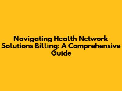 Navigating Health Network Solutions Billing: A Comprehensive Guide