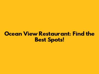Ocean View Restaurant: Find The Best Spots!