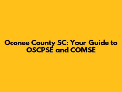Oconee County SC: Your Guide To OSCPSE And COMSE