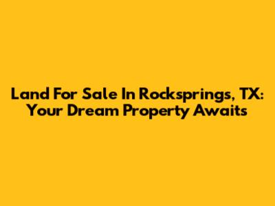 Land For Sale In Rocksprings, TX: Your Dream Property Awaits