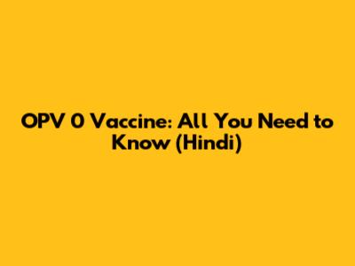 OPV 0 Vaccine: All You Need To Know (Hindi)