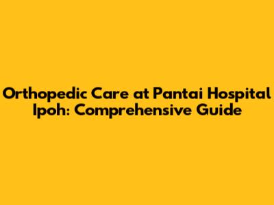 Orthopedic Care At Pantai Hospital Ipoh: Comprehensive Guide