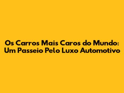 Você já se perguntou qual é o carro mais caro do mundo? Bem, prepare-se para uma viagem emocionante pelo universo do luxo automotivo, onde preços exorbitantes e designs exclusivos se encontram. Neste artigo, vamos mergulhar no mundo dos carros mais caros, explorando suas características, história e o que os torna tão especiais. Prepare-se para conhecer máquinas incríveis que representam o ápice da engenharia e do design, e que são verdadeiros objetos de desejo para colecionadores e entusiastas do mundo inteiro.