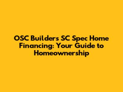 OSC Builders SC Spec Homes: Financing Your Dream Home