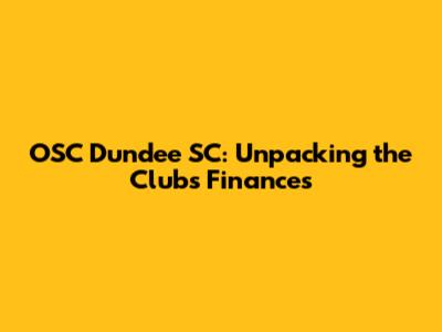 OSC Dundee SC: Unpacking The Club's Finances