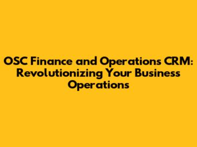 OSC Finance And Operations CRM: Boost Your Business