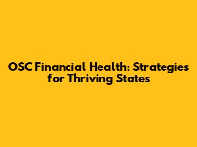 OSC Financial Health: Strategies For Thriving States