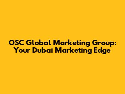 OSC Global Marketing Group: Your Dubai Marketing Edge