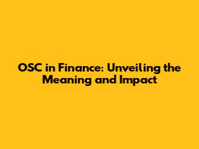 OSC In Finance: Unveiling The Meaning And Impact