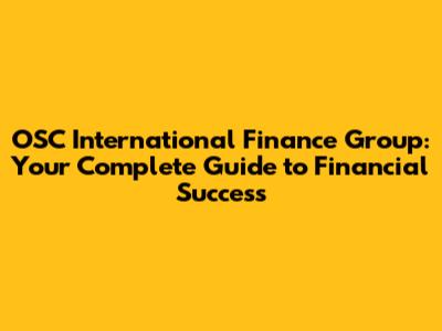 OSC International Finance Group: Your Guide