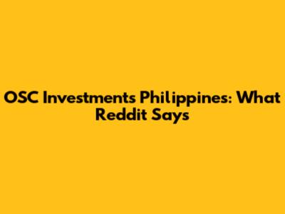 OSC Investments Philippines: What Reddit Says