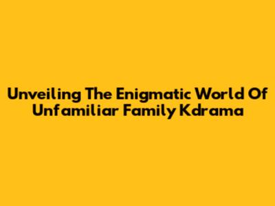 Unveiling The Enigmatic World Of 'Unfamiliar Family' Kdrama