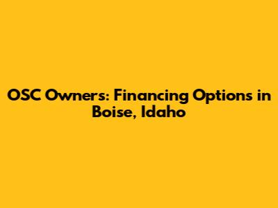 OSC Owners: Financing Options In Boise, Idaho