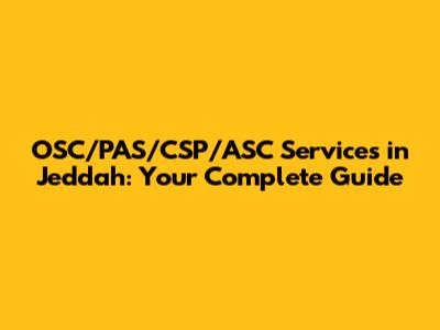 OSC/PAS/CSP/ASC Services In Jeddah: Your Complete Guide