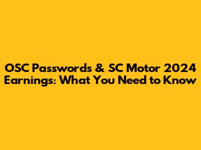 OSC Passwords & SC Motor 2024 Earnings: What You Need To Know