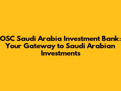 Hey guys! Let's dive deep into the world of OSC Saudi Arabia Investment Bank. This isn't just any bank; it's a key player in the exciting financial landscape of Saudi Arabia. We're going to explore what makes OSC tick, the investment opportunities it offers, and why you might want to consider it for your financial journey. Saudi Arabia, as you likely know, is undergoing a massive transformation, with Vision 2030 driving unprecedented growth and diversification. This creates a fertile ground for investors, and OSC is right there, at the forefront, helping people like you and me navigate this dynamic market.