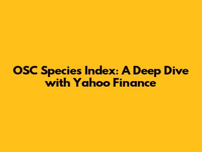 OSC Species Index: A Deep Dive With Yahoo Finance