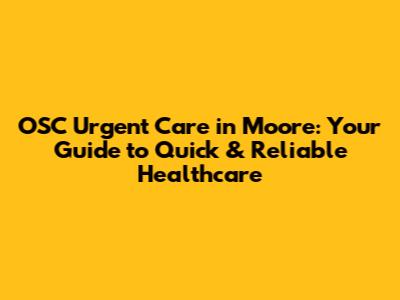 OSC Urgent Care In Moore: Your Guide To Quick & Reliable Healthcare