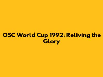 OSC World Cup 1992: A Nostalgic Dive