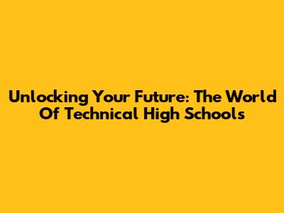 Unlocking Your Future: The World Of Technical High Schools