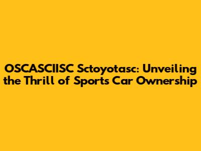 OSCASCIISC Sctoyotasc: Your Guide To Sports Car Excellence