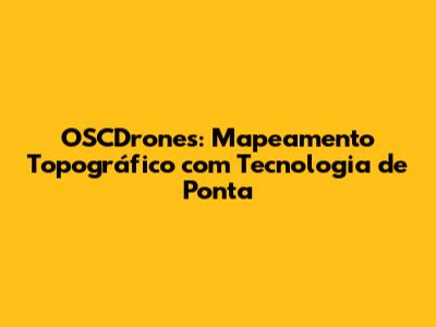 OSCDrones: Mapeamento Topográfico Com Tecnologia De Ponta