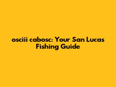 Hey there, fishing enthusiasts! Planning a trip to San Lucas for some epic fishing? Let's talk about how oscii cabosc can be your secret weapon to reel in the big ones. San Lucas is a fantastic spot for fishing, known for its diverse marine life and stunning views. But to really make the most of your trip, you need the right information and resources. So, let's dive into everything you need to know about fishing in San Lucas, and how osciii cabosc fits into the picture.