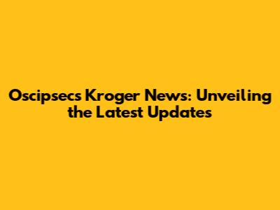Oscipsec's Kroger News: Unveiling The Latest Updates