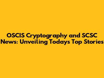 OSCIS Cryptography And SCSC News: Unveiling Today's Top Stories