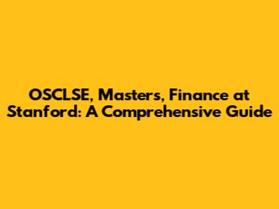 OSCLSE, Master's, Finance At Stanford: A Comprehensive Guide