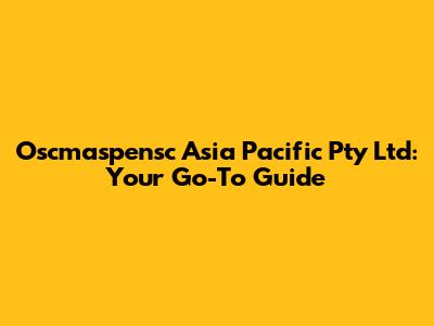 Oscmaspensc Asia Pacific Pty Ltd: Your Go-To Guide