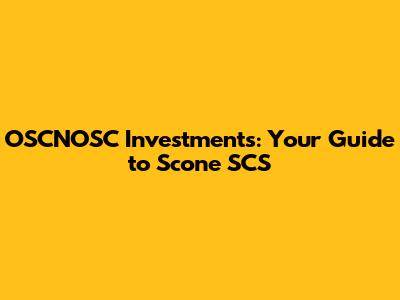 OSCNOSC Investments: Your Guide To Scone SCS
