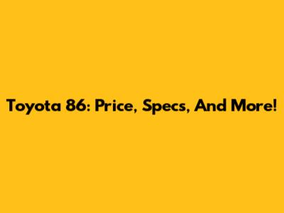Toyota 86: Price, Specs, And More!