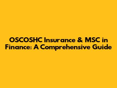 OSCOSHC Insurance & MSC In Finance: A Comprehensive Guide