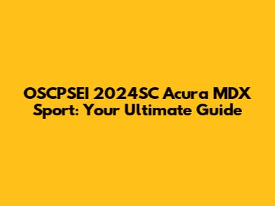 OSCPSEI 2024SC Acura MDX Sport: Your Go-To Guide