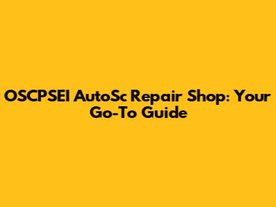 OSCPSEI AutoSc Repair Shop: What You Need To Know