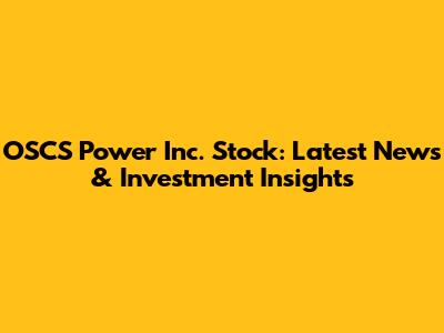 OSCS Power Inc. Stock: Latest News & Investment Insights