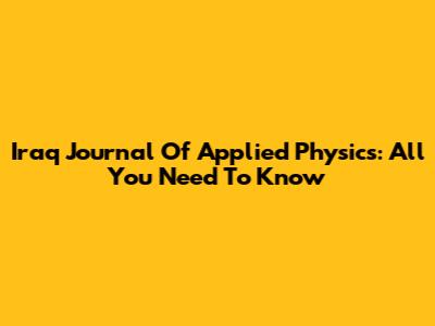 Iraq Journal Of Applied Physics: All You Need To Know