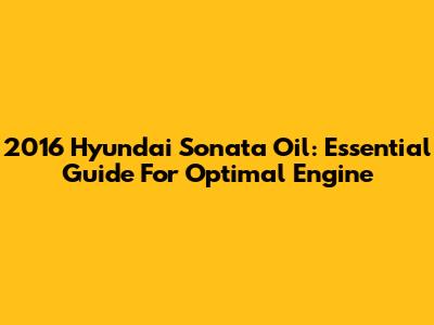 2016 Hyundai Sonata Oil: Essential Guide For Optimal Engine