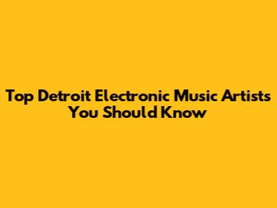 Top Detroit Electronic Music Artists You Should Know