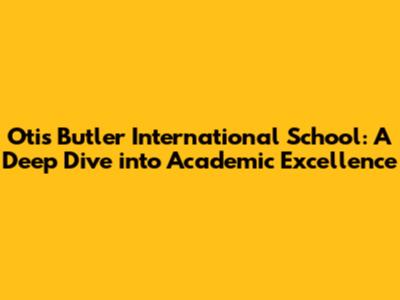 Otis Butler International School: Your Guide To Excellence