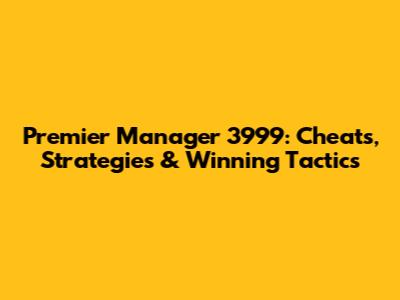Premier Manager 3999: Cheats, Strategies & Winning Tactics