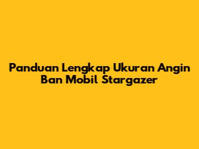 Panduan Lengkap Ukuran Angin Ban Mobil Stargazer